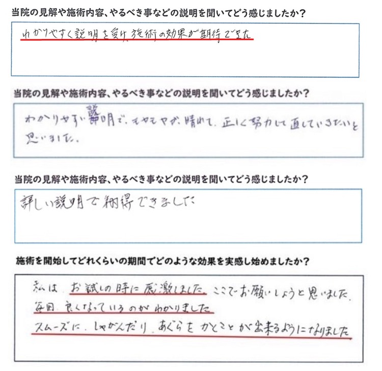 してもらった後のスカッとした感じが今までにない感じだったので、ここで良くなりたいと思った。