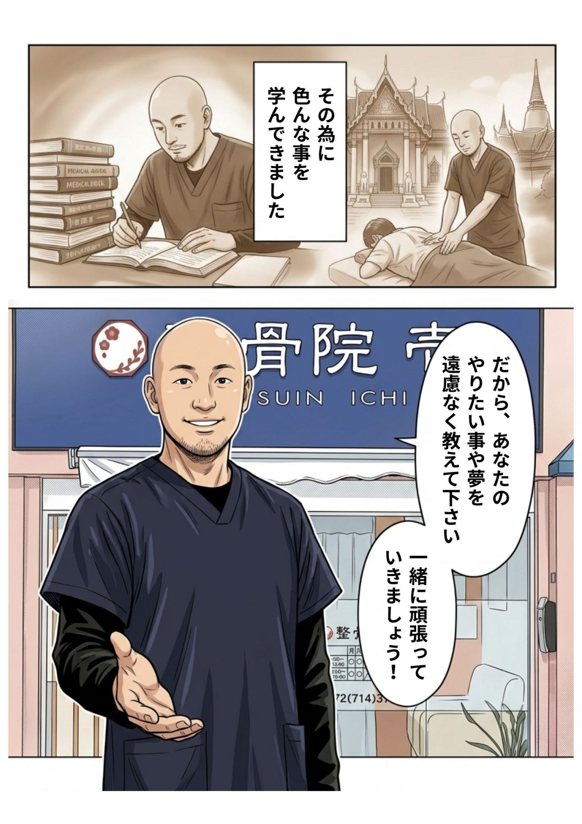 当院では、解剖学や運動学はもちろん、タイ王国の現地の学校で学んだ古来から伝わる伝統手法を融合させたオリジナルの施術を提供しています。
